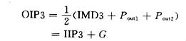 IMD3為三階互調(diào)失真,他等于干擾信號的輸出功率電平減去三階互調(diào)量功率電平的值,即: